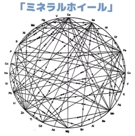 またミネラルはバランスが大切であり、ミネラルが働く時は、他のミネラルとの相互関係「ミネラルホイール」があり、他のミネラルと共同で作用し、他が足りないと働きません。
